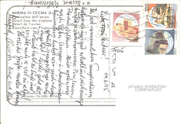 old postcard Marina di Cecina Flugaufnahme postalisch gelaufen Erhaltung siehe scans