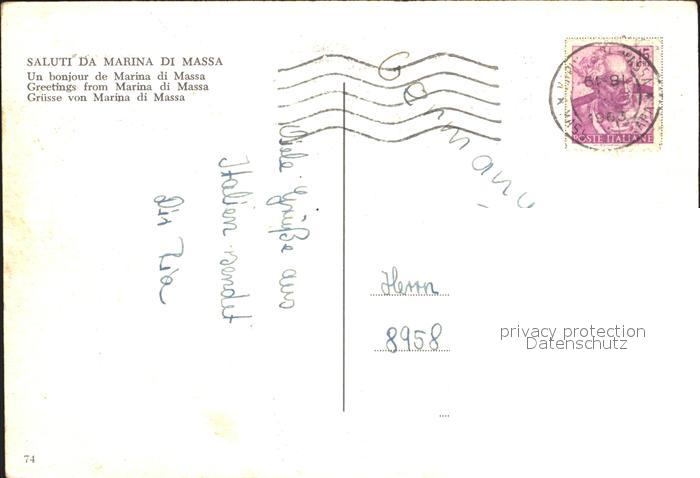 old postcard Marina di Massa Campingplatz Strand Hochhaus postalisch gelaufen Erhaltung siehe scans