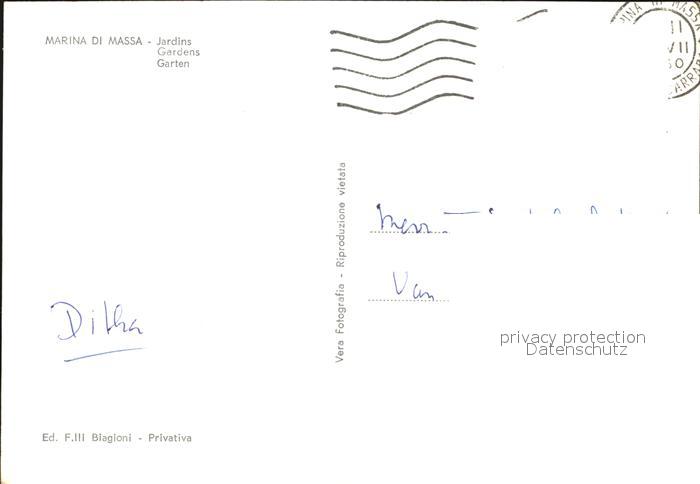 old postcard Marina di Massa Giardini Gaerten Palmen postalisch gelaufen Erhaltung siehe scans