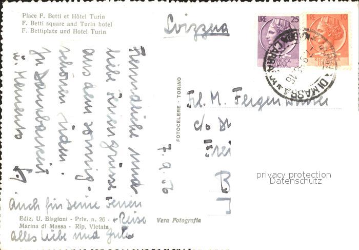 alte Postkarte Marina di Massa Piazzo Betti Albergo Torino postalisch gelaufen Erhaltung siehe scans