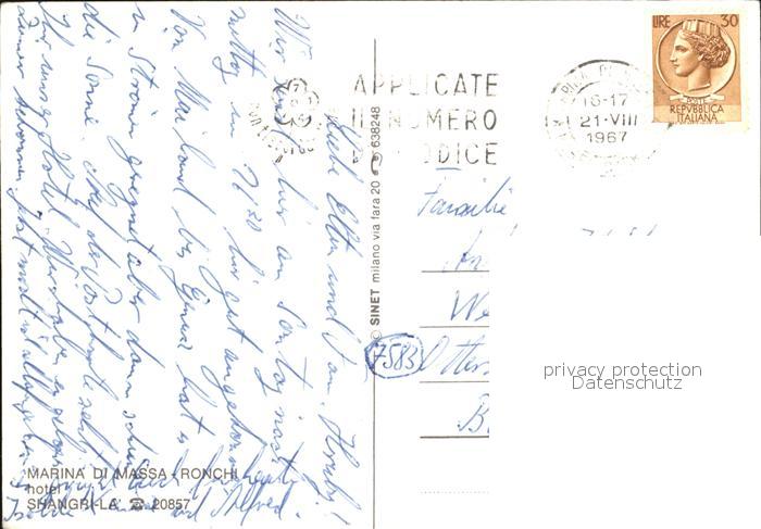 old postcard Marina di Massa Ronchi Hotel postalisch gelaufen Erhaltung siehe scans