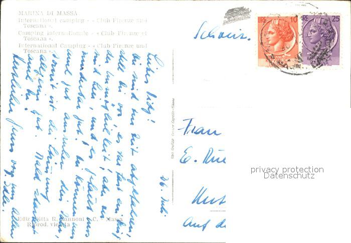 old postcard Marina di Massa Strand Club Firenze e Toscana postalisch gelaufen Erhaltung siehe scans