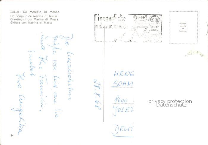 old postcard Marina di Massa Strand Segelboot Promenade postalisch gelaufen Erhaltung siehe scans