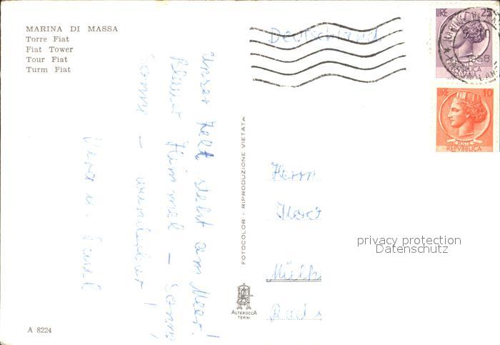 old postcard Marina di Massa Torre Fiat Turm Fiat postalisch gelaufen Erhaltung siehe scans