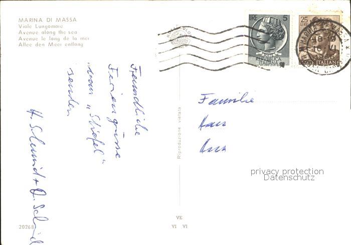 old postcard Marina di Massa Viale Lungomare postalisch gelaufen Erhaltung siehe scans