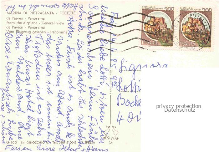 74096062 old postcard MARINA DI PIETRASANTA Lucca Toscana IT Fliegeraufnahme postalisch gelaufen Erhaltung siehe scans [WerneD78] KatCode: 11240
