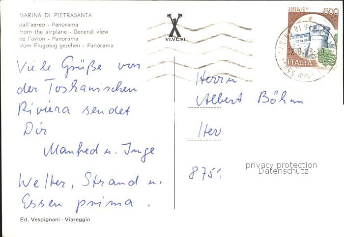 old postcard Marina di Pietrasanta Panorama dall areo postalisch gelaufen Erhaltung siehe scans
