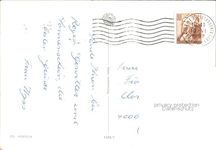 old postcard Marina di Pietrasanta Segelpartie Panorama Abendstimmung postalisch gelaufen Erhaltung siehe scans