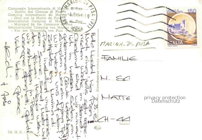 74137130 old postcard Marina di Pisa Toscana IT Campeggio Internazionale postalisch gelaufen Erhaltung siehe scans [FriedD77] KatCode: 11240