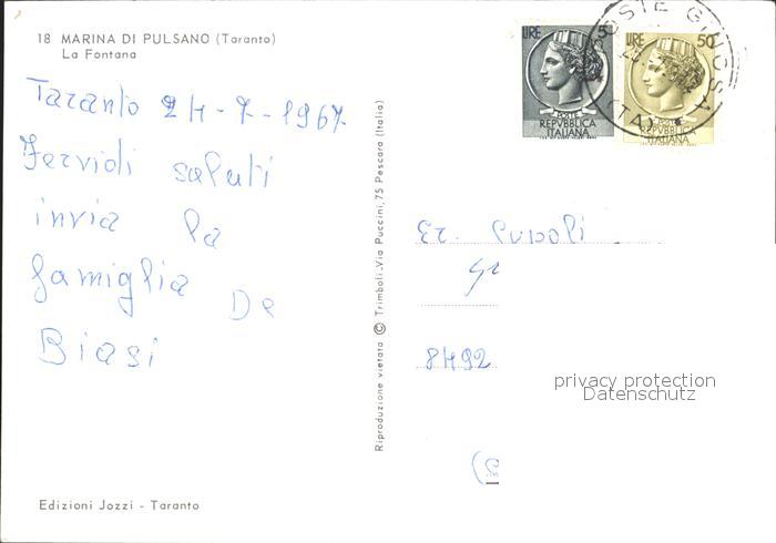 old postcard Marina di Pulsano Fontana postalisch gelaufen Erhaltung siehe scans