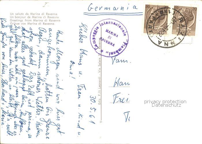 old postcard Marina di Ravenna Dampfer Strand postalisch gelaufen Erhaltung siehe scans