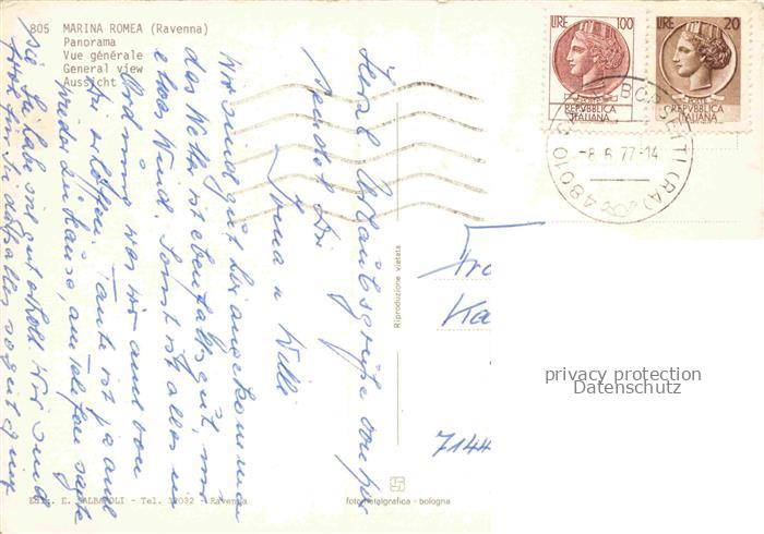74132291 old postcard Marina Romea Ravenna Emilia-Romagna IT Panorama postalisch gelaufen Fliegeraufnahme Erhaltung siehe scans [FriedD77] KatCode: 11240
