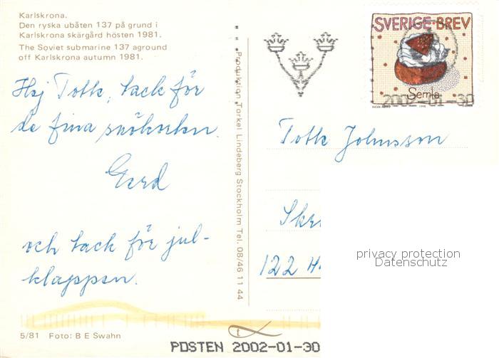 73900963 alte Postkarte Marine Karlskrona postalisch gelaufen Erhaltung siehe scans [IrynaD87] KatCode: 22480000001000