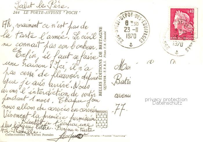73900973 alte Postkarte Marine Le Porte Avions Foch postalisch gelaufen Erhaltung siehe scans [IrynaD87] KatCode: 22480000001000