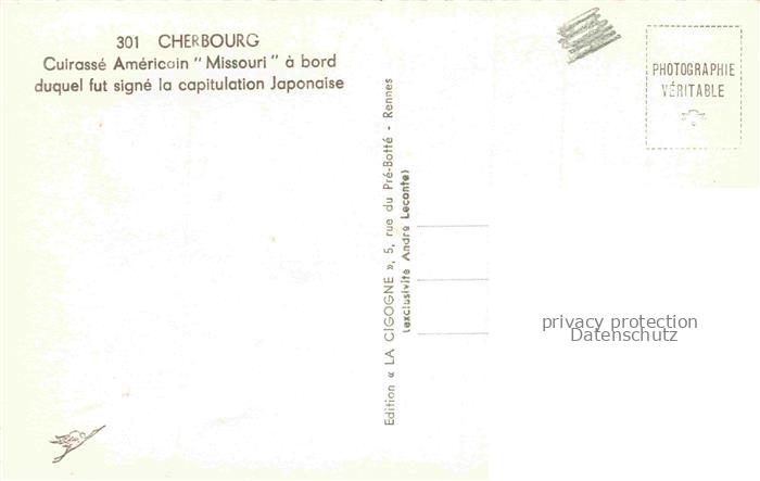 74064718 Marine Warships Cherbourg Cuirasse Americain Missouri postalisch nicht gelaufen Erhaltung siehe scans [IrynaD87] KatCode: 22480000001000