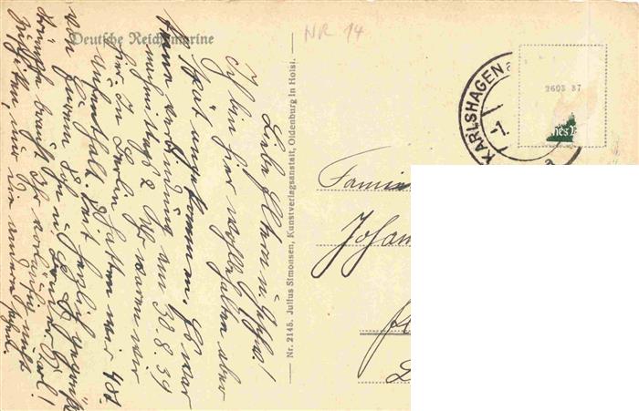 74025939 alte Postkarte Marine Warships Deutschland Raichsmarine postalisch gelaufen Erhaltung siehe scans [IrynaD87] KatCode: 22480000001000