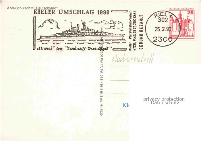 74051984 Marine Warships Schulschiff Deutschland A59Kiel postalisch nicht gelaufen Erhaltung siehe scans [IrynaD87] KatCode: 22480000001000