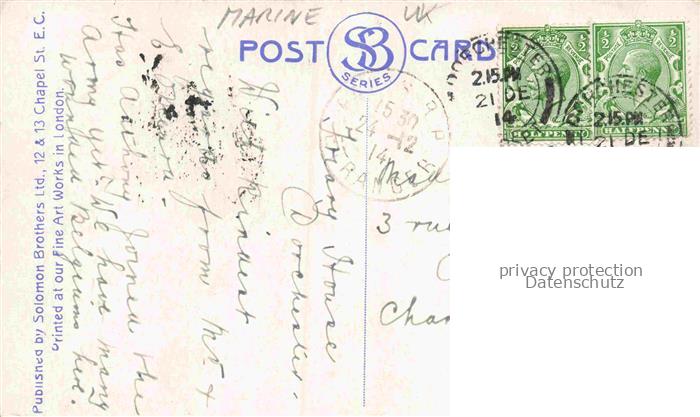 74105621 alte Postkarte Marine Warships UK Sesons Greetings Flag King postalisch gelaufen Erhaltung siehe scans [IrynaD87] KatCode: 22480000001000