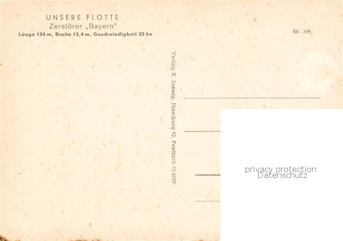 73900975 Marine Zerstoerer Bayern postalisch nicht gelaufen Erhaltung siehe scans [IrynaD87] KatCode: 22480000001000