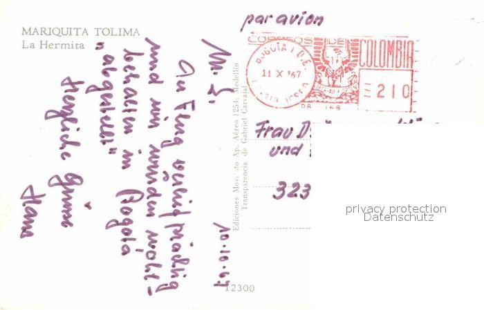 old postcard Mariquita Tolima La Hermita postalisch gelaufen Erhaltung siehe scans [FriedD77]