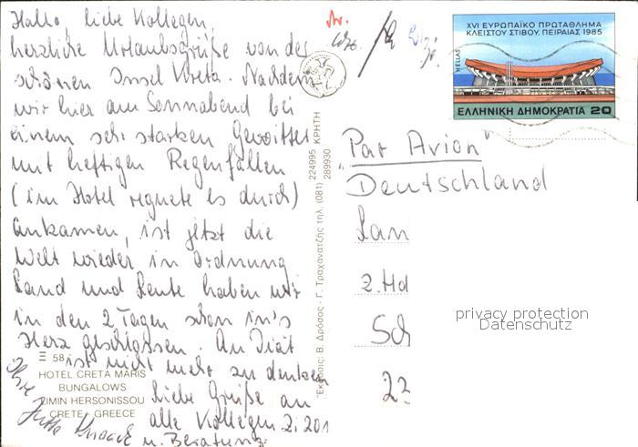 old postcard Maris Hotel Kreta Swimmingpool Strandpartie Terrasse postalisch gelaufen Erhaltung siehe scans