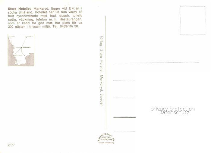 Markaryd Stora Hotellet postalisch nicht gelaufen Erhaltung siehe scans [NatalD47]