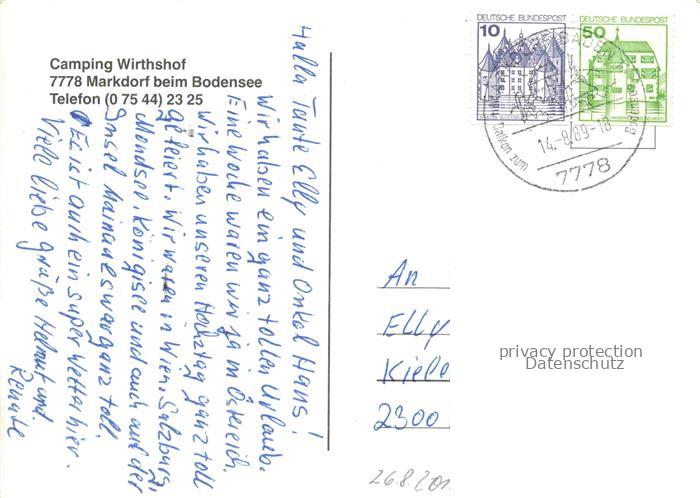 74149212 alte Postkarte Markdorf Baden Bodenseekreis BW Camping Wirthshof Freibad postalisch gelaufen Erhaltung siehe scans [FriedD77] KatCode: 11110008435034