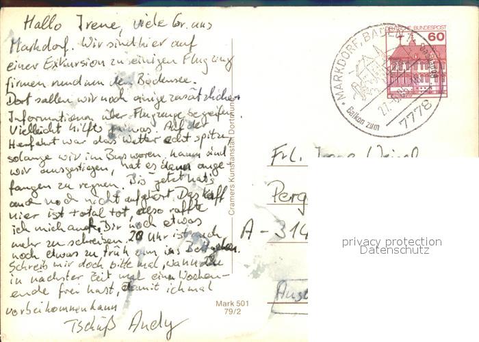 71838865 alte Postkarte Markdorf Baden Kirche Alpenpanorama Schlossturm Hexenturm Gasthof Walser Altstadt postalisch gelaufen Erhaltung siehe scans KatCode: 11110008435034