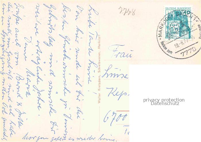 74104265 alte Postkarte Markdorf Baden Untertorturm Kirche Hexenturm Motive Stadtzentrum Altstadt postalisch gelaufen Erhaltung siehe scans [FriedD77] KatCode: 11110008435034