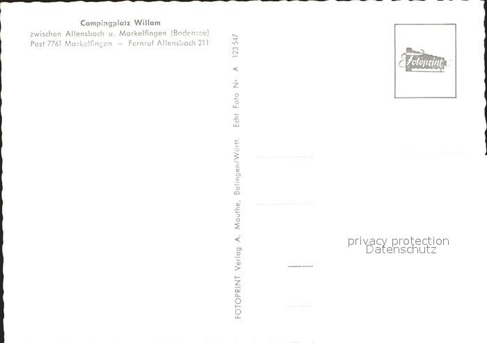 72321236 Markelfingen Campingplatz Willam Bodensee postalisch nicht gelaufen Erhaltung siehe scans KatCode: 11110008335063