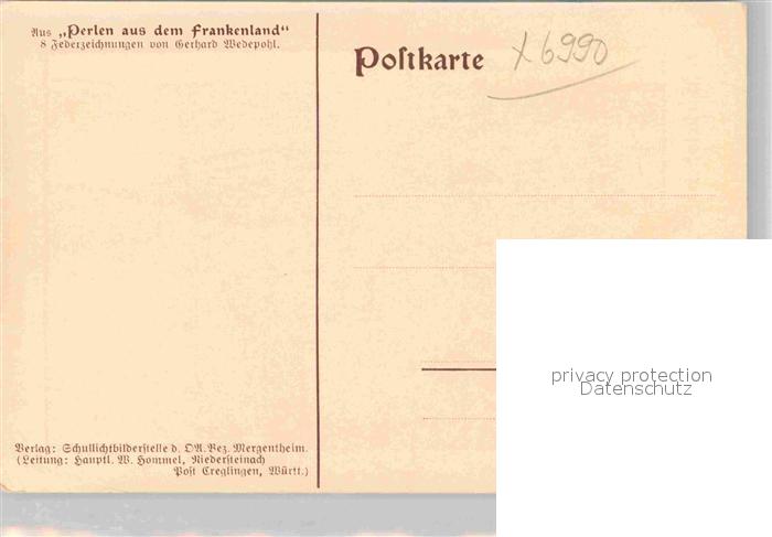 42874996 Markelsheim Alte Klosterkirche Engelberg Federzeichnung Wedepohlmarke postalisch nicht gelaufen Erhaltung siehe scans [KathaD81] KatCode: 11110008128007