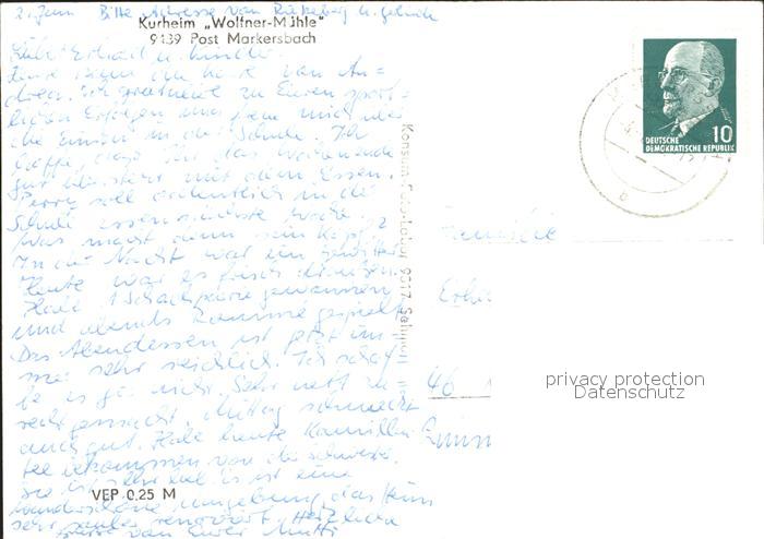 72174335 alte Postkarte Markersbach Raschau-Markersbach Kurheim Wolfner Muehle Waldschild postalisch gelaufen Erhaltung siehe scans KatCode: 11110014191230