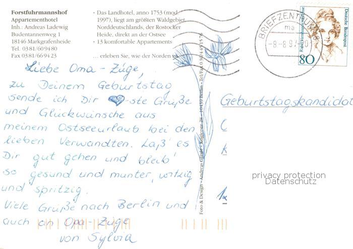 73756503 alte Postkarte Markgrafenheide Rostock Forstfuhrmannshof Teilansichten Reetdach-Haus postalisch gelaufen Erhaltung siehe scans [LiesaD40] KatCode: 11110013003000