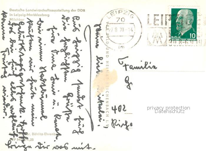 73095301 alte Postkarte Markkleeberg Deutsche Landschaftsausstellung DDR Milchbar postalisch gelaufen Erhaltung siehe scans [KathaD81] KatCode: 11110014379450