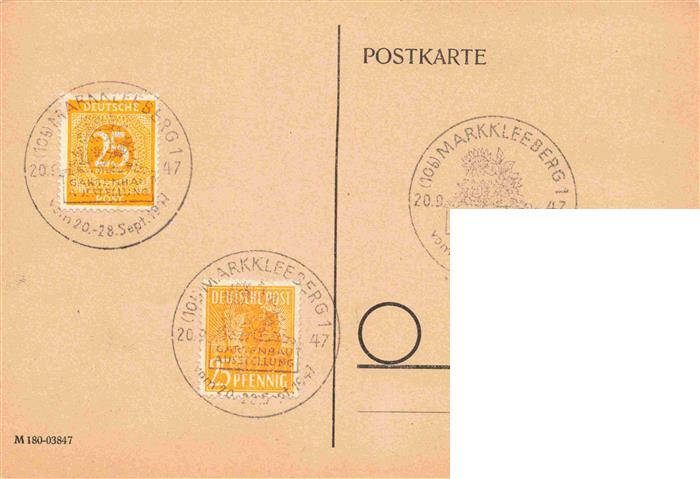 73974936 alte Postkarte Markkleeberg Gartenbau Ausstellung Leipzig 1947 postalisch gelaufen Erhaltung siehe scans [WerneD78] KatCode: 11110014379450