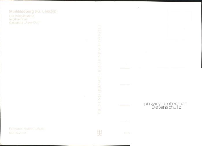 72374237 Markkleeberg HO Parkgaststaette Imbisszentrum Gaststaette Agra Club postalisch nicht gelaufen Erhaltung siehe scans KatCode: 11110014379450