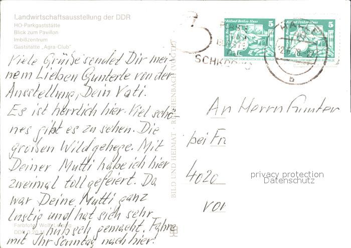 72373109 alte Postkarte Markkleeberg HO Parkgaststaette Pavillon Imbisszentrum Gaststaette Agra Club postalisch gelaufen Erhaltung siehe scans KatCode: 11110014379450