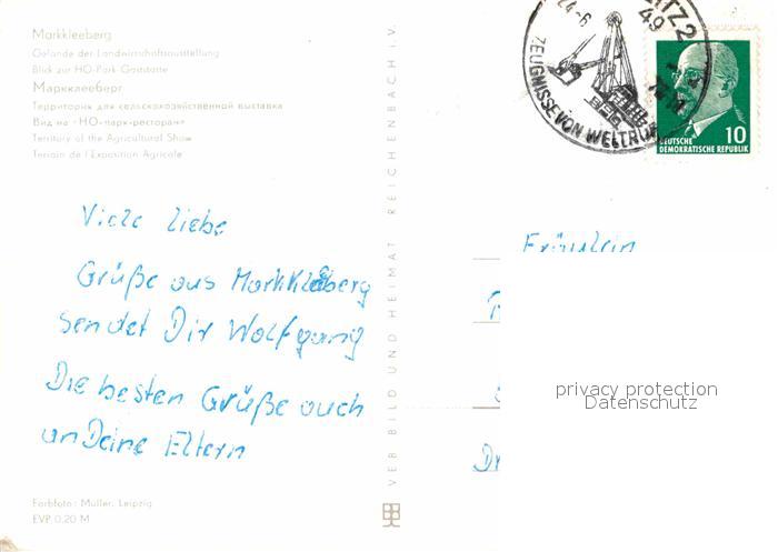 72630626 alte Postkarte Markkleeberg Landwirtschaftsausstellung Park postalisch gelaufen Erhaltung siehe scans [LiesaD40] KatCode: 11110014379450