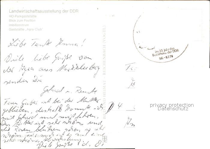 72526573 alte Postkarte Markkleeberg Parkgaststaette Pavillon Imbisszentrum Gaststaette Agra Club postalisch gelaufen Erhaltung siehe scans KatCode: 11110014379450