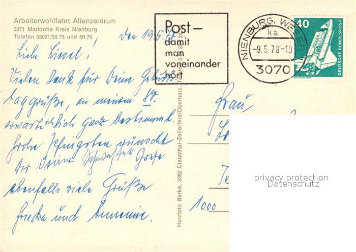 73166969 alte Postkarte Marklohe AWO Altenzentrum postalisch gelaufen Erhaltung siehe scans [KathaD81] KatCode: 11110003256021