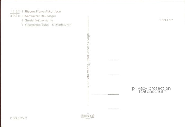 72341938 Markneukirchen Musikinstrumenten Museum Akkordeon Orgel Streichinstrumente Tuba Miniaturen postalisch nicht gelaufen Erhaltung siehe scans KatCode: 11110014178330