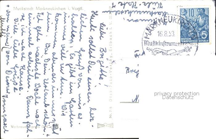 72387132 alte Postkarte Markneukirchen Musikstadt postalisch gelaufen Erhaltung siehe scans KatCode: 11110014178330