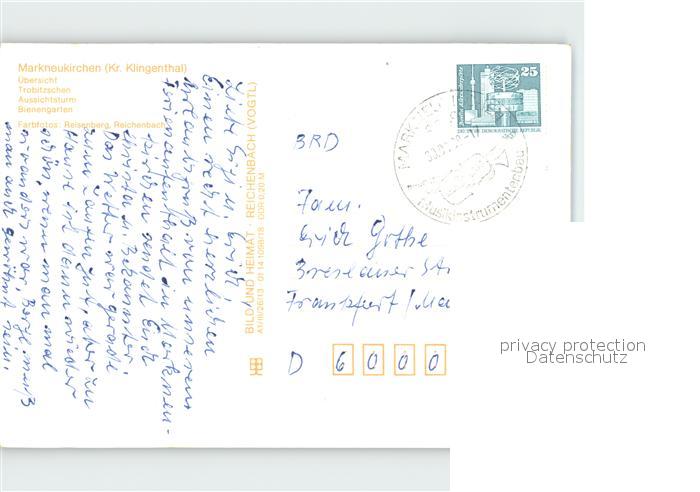 72078684 alte Postkarte Markneukirchen Panorama Trobitzschen Aussichtsturm Bienengarten postalisch gelaufen KatCode: 11110014178330
