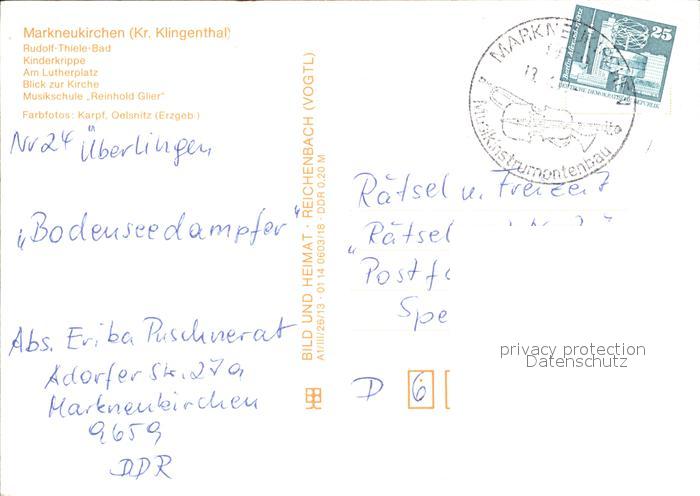 72371402 alte Postkarte Markneukirchen Rudolf Thiele Bad Kinderkrippe Lutherplatz Kirche Musikschule postalisch gelaufen Erhaltung siehe scans KatCode: 11110014178330