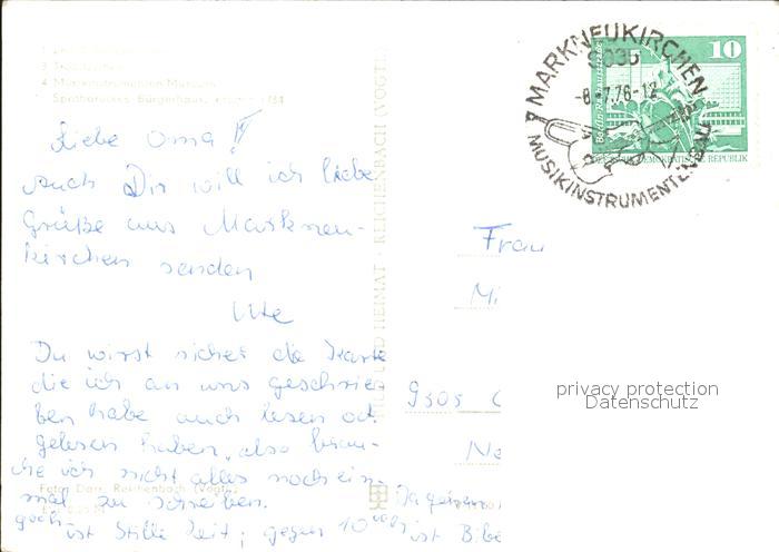 72343385 alte Postkarte Markneukirchen Teilansicht Kirche Trobitzschen Musikinstrumenten Museum Buergerhaus Spaetbarock postalisch gelaufen Erhaltung siehe scans KatCode: 11110014178330