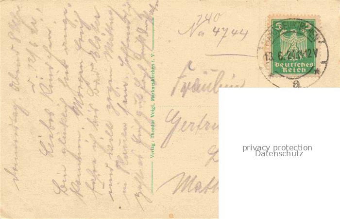 74022406 alte Postkarte Markneukirchen Vogtlandkreis Sachsen Markt Kirche postalisch gelaufen Erhaltung siehe scans [WerneD78] KatCode: 11110014178330