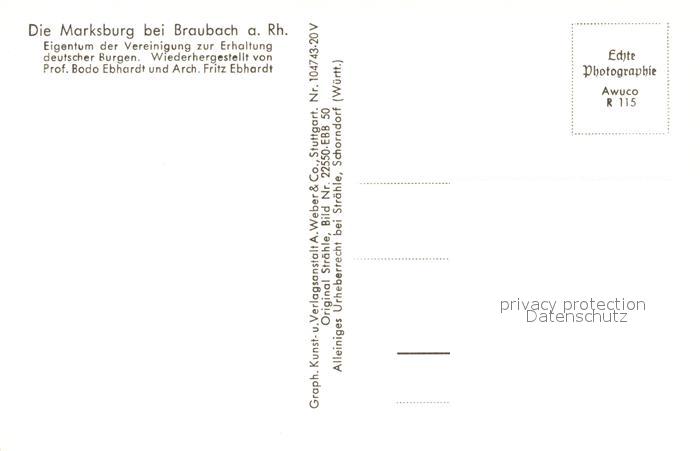 73540311 Marksburg Fliegeraufnahme bei Braubach mit Niederspay Rhein postalisch nicht gelaufen Erhaltung siehe scans [LiesaD40] KatCode: 11110007141501