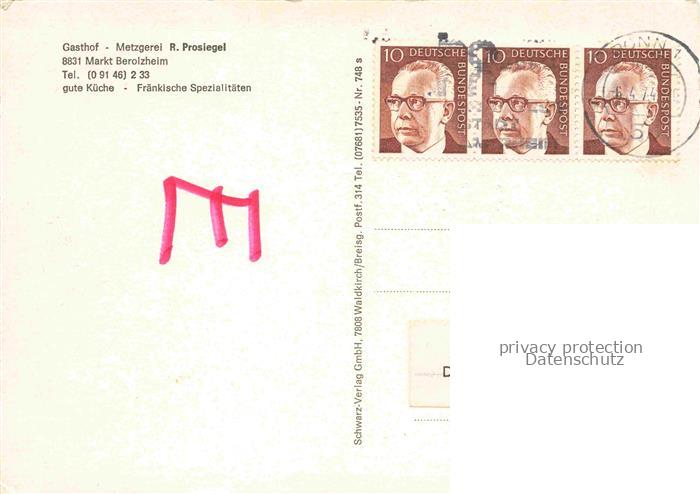 74005653 alte Postkarte Markt Berolzheim Panorama Gasthof Metzgerei Prosiegel Gaststube postalisch gelaufen Erhaltung siehe scans [WerneD78] KatCode: 11110009577149