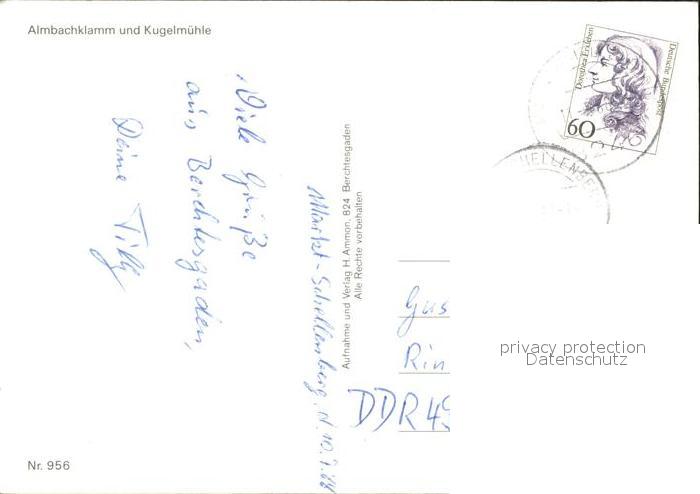 72375593 alte Postkarte Markt Schellenberg Almbachklamm Kugelmuehle postalisch gelaufen Erhaltung siehe scans KatCode: 11110009172116
