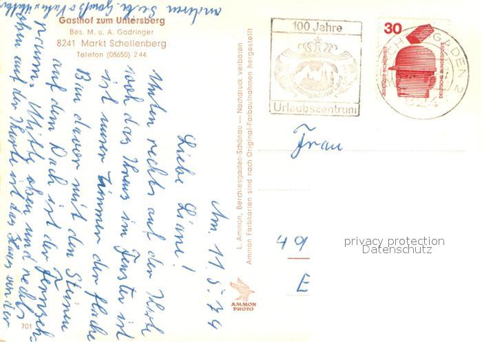 73671312 alte Postkarte Markt Schellenberg Ortsmotive Gasthof zum Untersberg Panorama postalisch gelaufen Erhaltung siehe scans [WerneD78] KatCode: 11110009172116